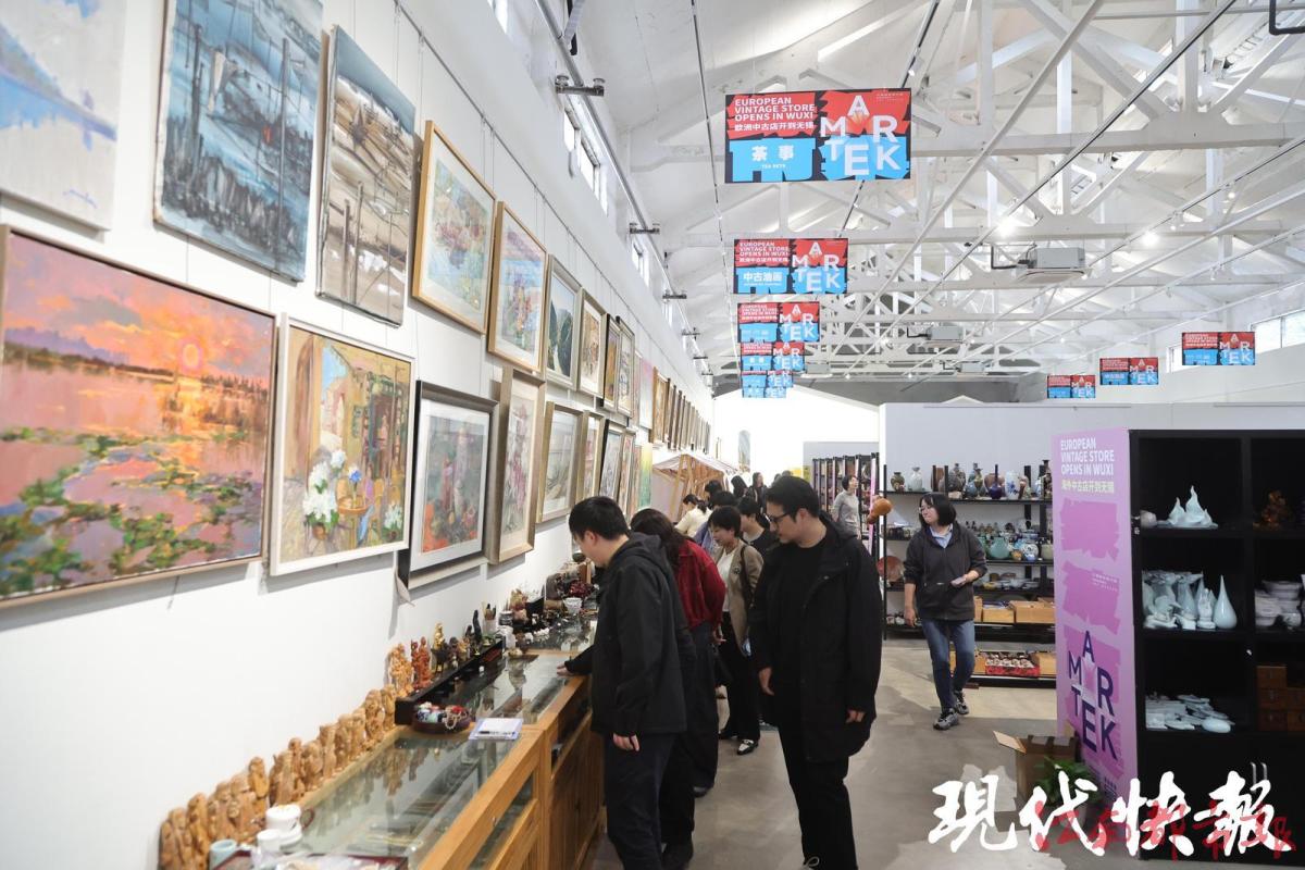 相鄰的國內(nèi)外藝術(shù)名家油畫藝術(shù)展廳內(nèi),前不久舉辦了“一城山水 如畫無錫”油畫藝術(shù)展,來自白俄羅斯、土耳其、法國、泰國等20余位藝術(shù)家親臨現(xiàn)場參加;非遺(惠山泥人)展示廳則充滿“錫味”,憨態(tài)可掬的“大阿福”、復(fù)刻無錫老市井的泥人場景,讓媒體團(tuán)直觀感受到無錫非遺的鮮活生命力。中古藝術(shù)貨倉內(nèi)幾十萬件海外回流陶瓷、東亞書畫錯(cuò)落陳列,形成“藝術(shù)欣賞—休閑社交—文化消費(fèi)”的完整體驗(yàn)鏈。